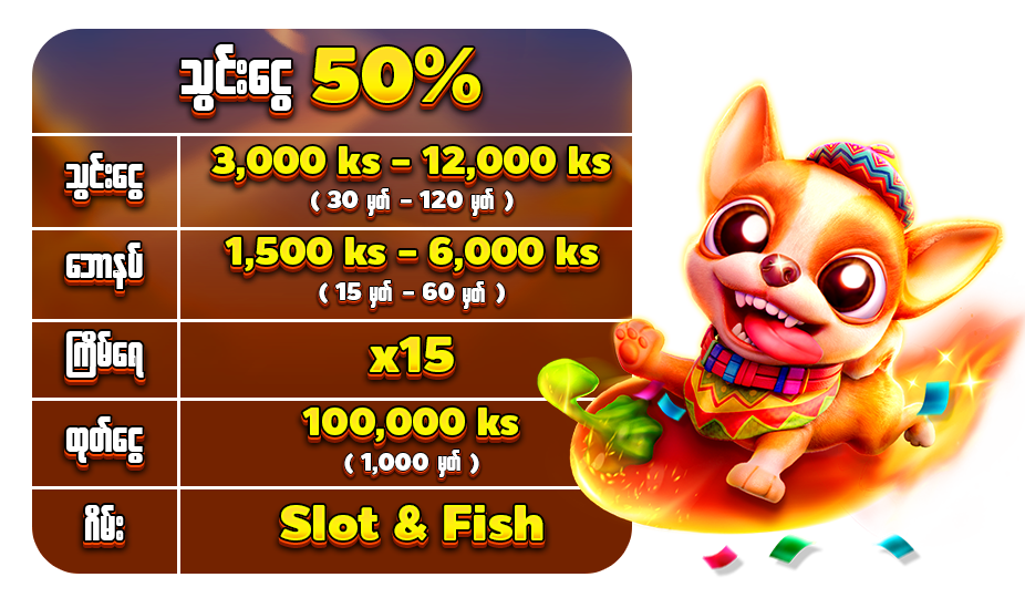 🧧 လအစ 50 % အပိုရ 🧧